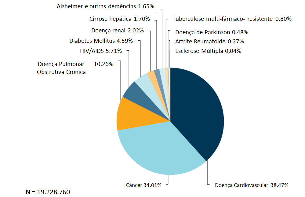 Figura 1 – Distribuição da necessidade de cuidados paliativos em adultos no final da vida por grupo de doenças.