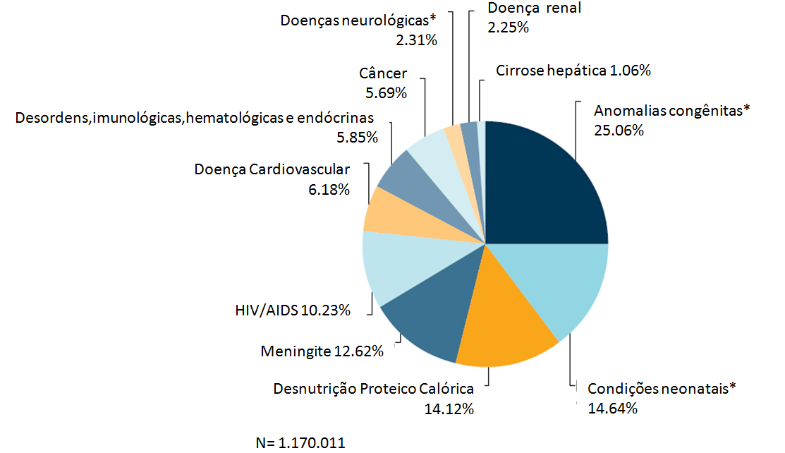 Figura 2- Distribuição das necessidades de cuidados paliativos na criança por grupo de doenças